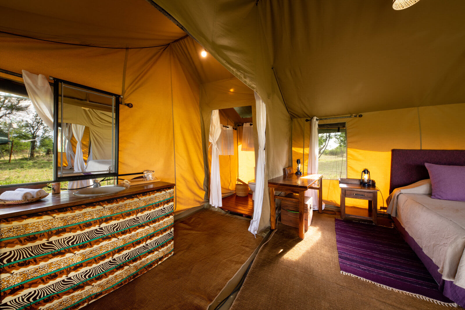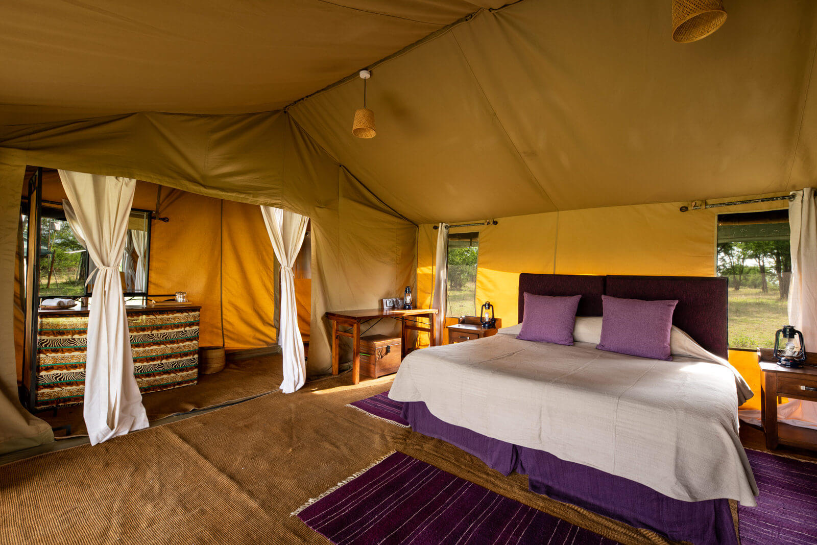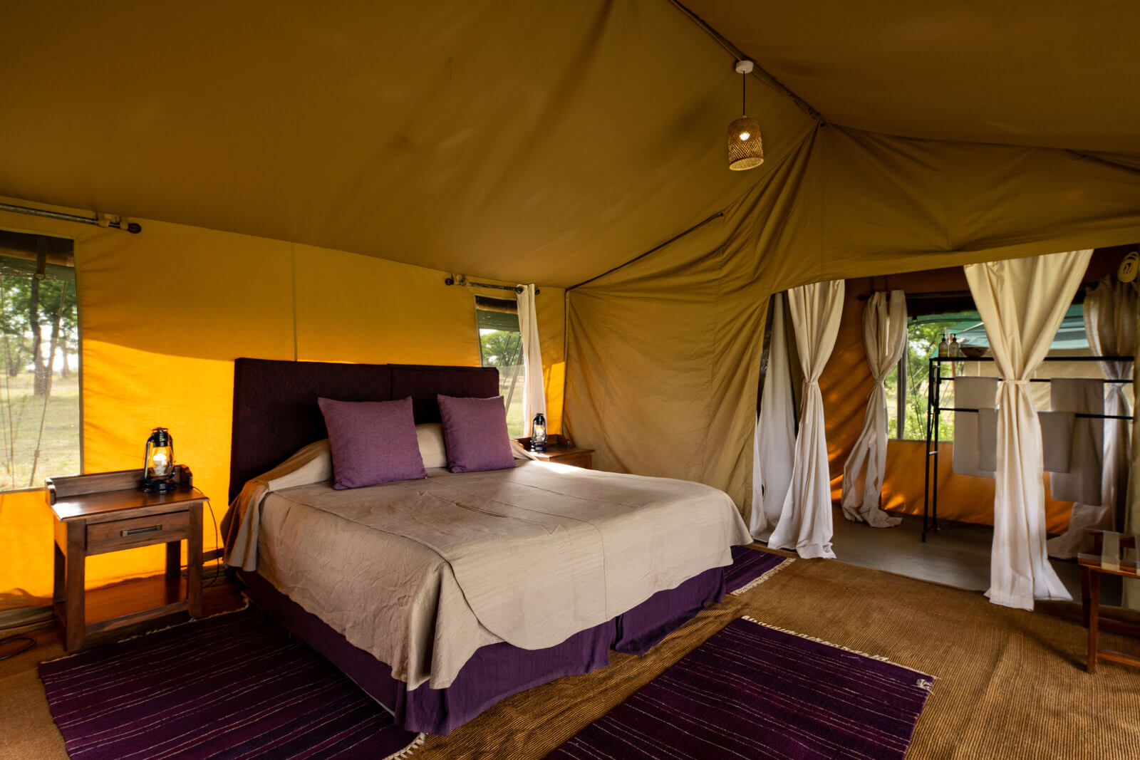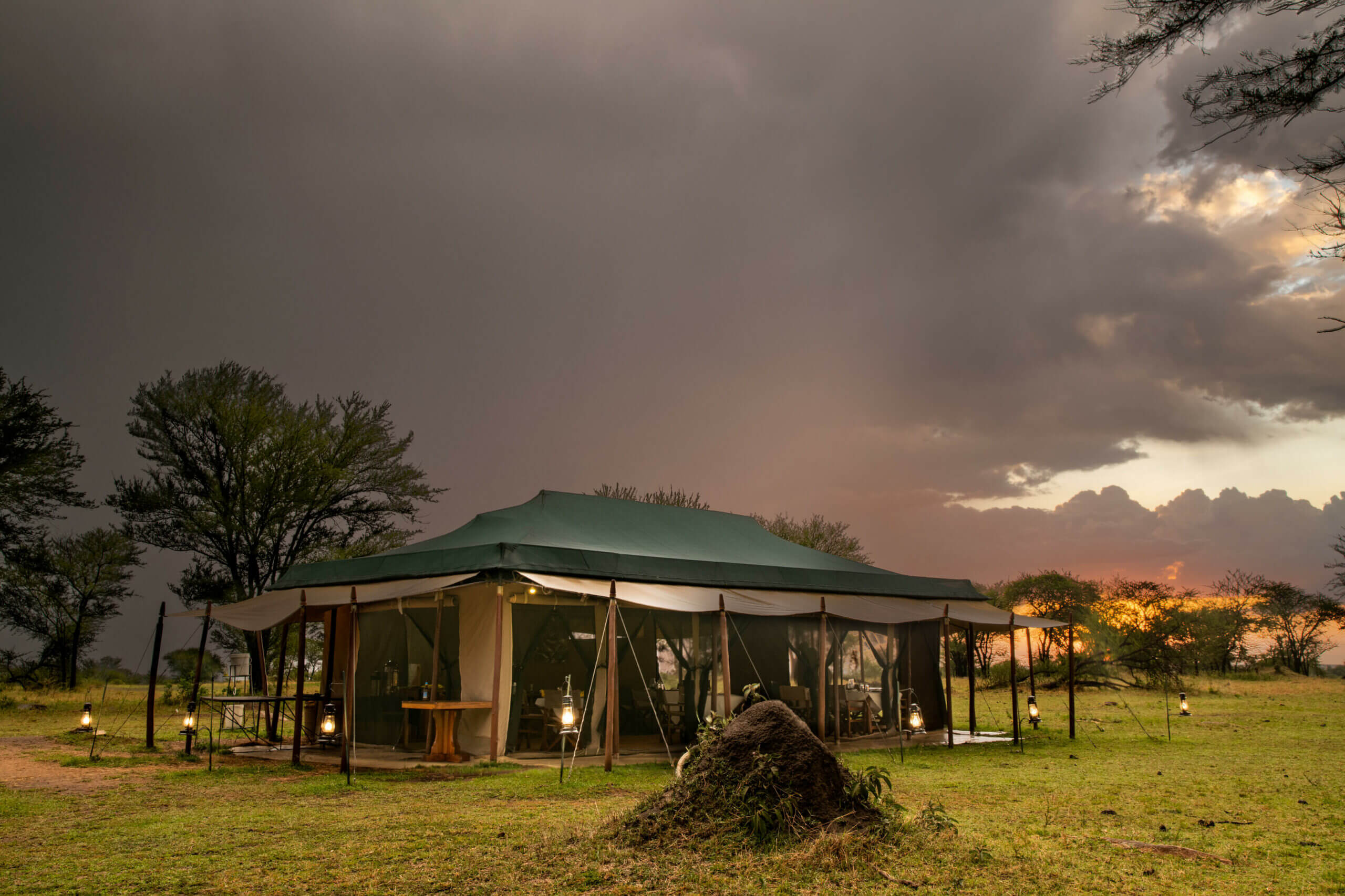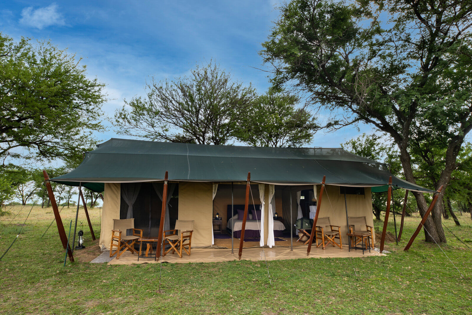 This luxury temporary camp is open from June to November. It allows visitors to be in the proximity of the Great Migration and to be able to explore remote areas and the beautiful settings of Seregenti with a large amount of resident fauna. The camp has only ten double tents and a family tent which assures the intimacy and exclusivity of this intense experience.